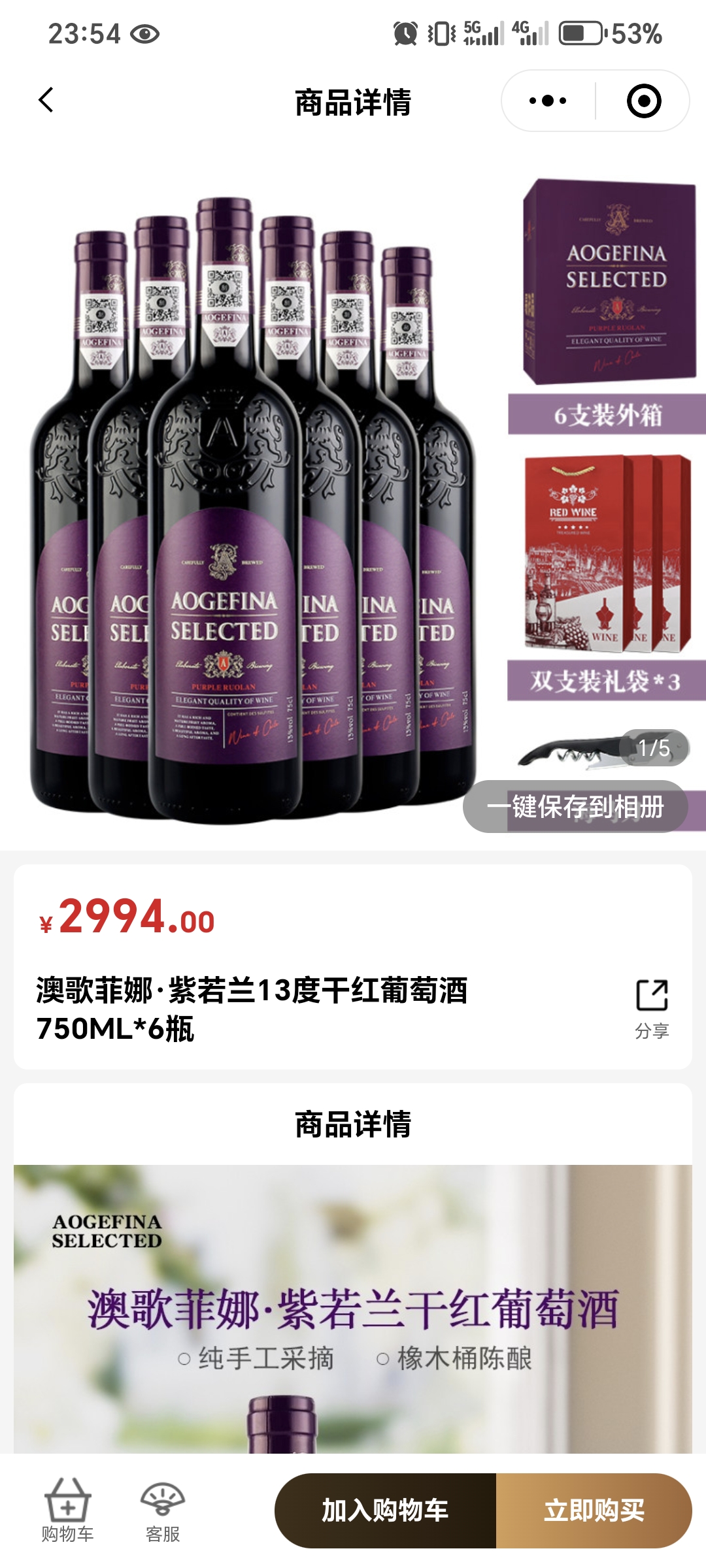 商品名称:澳歌菲娜葡萄酒酒6瓶680券