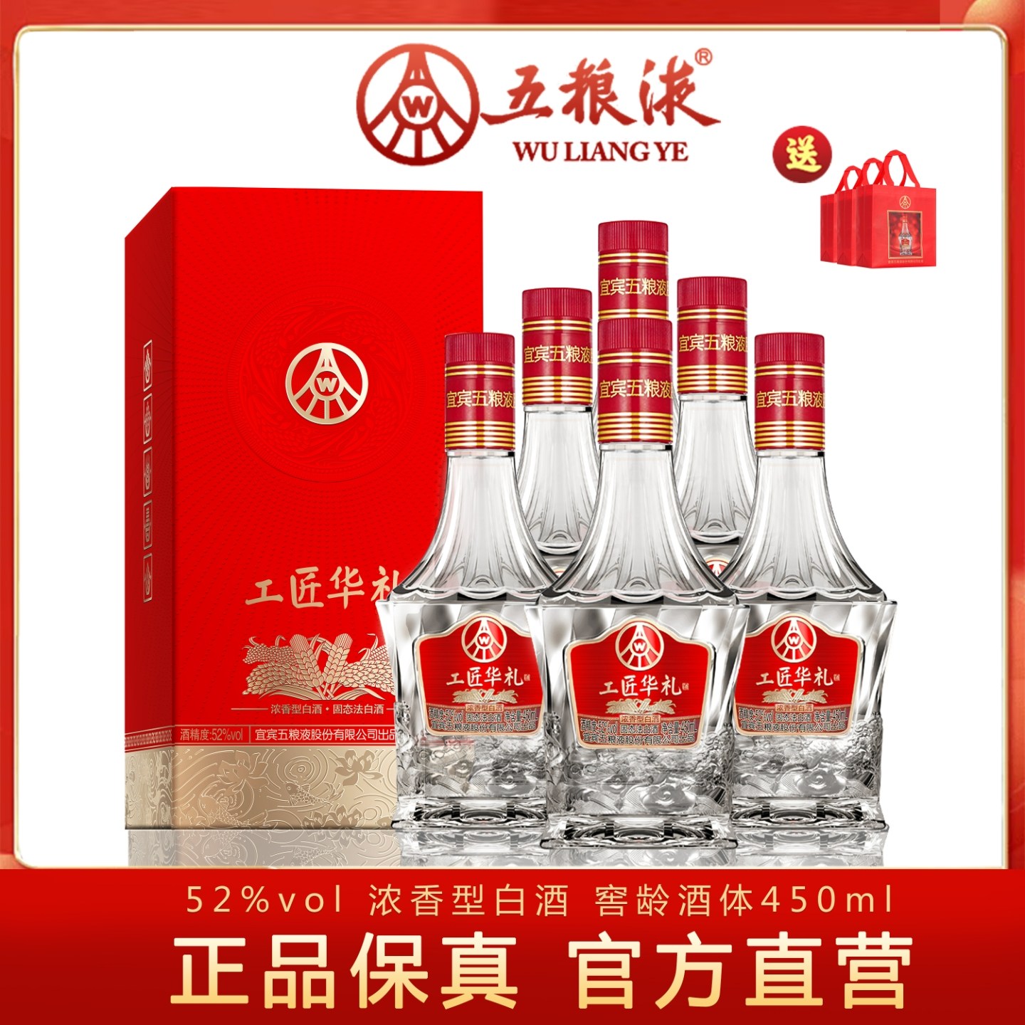 商品名称:五粮液 工匠华礼52度450ml*2瓶