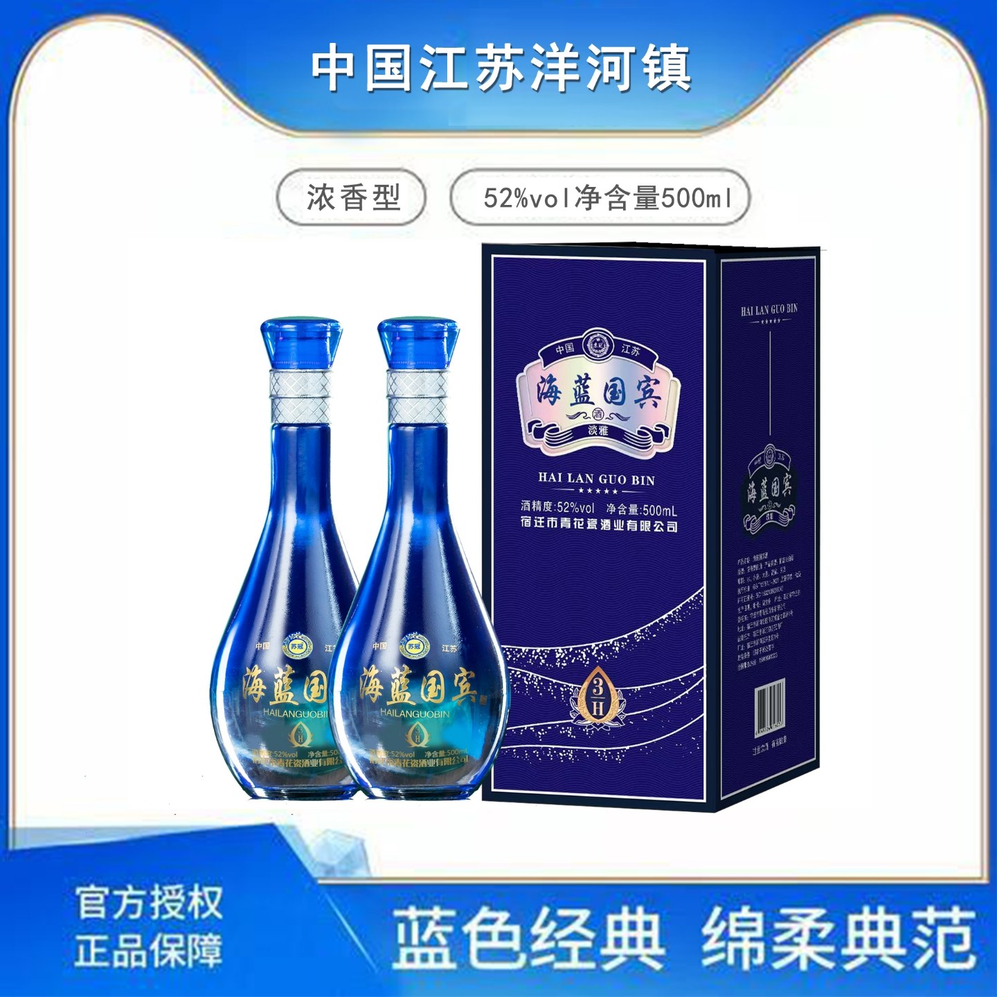商品名称:海蓝国宾绵柔52度浓香型白酒 500ml*6瓶