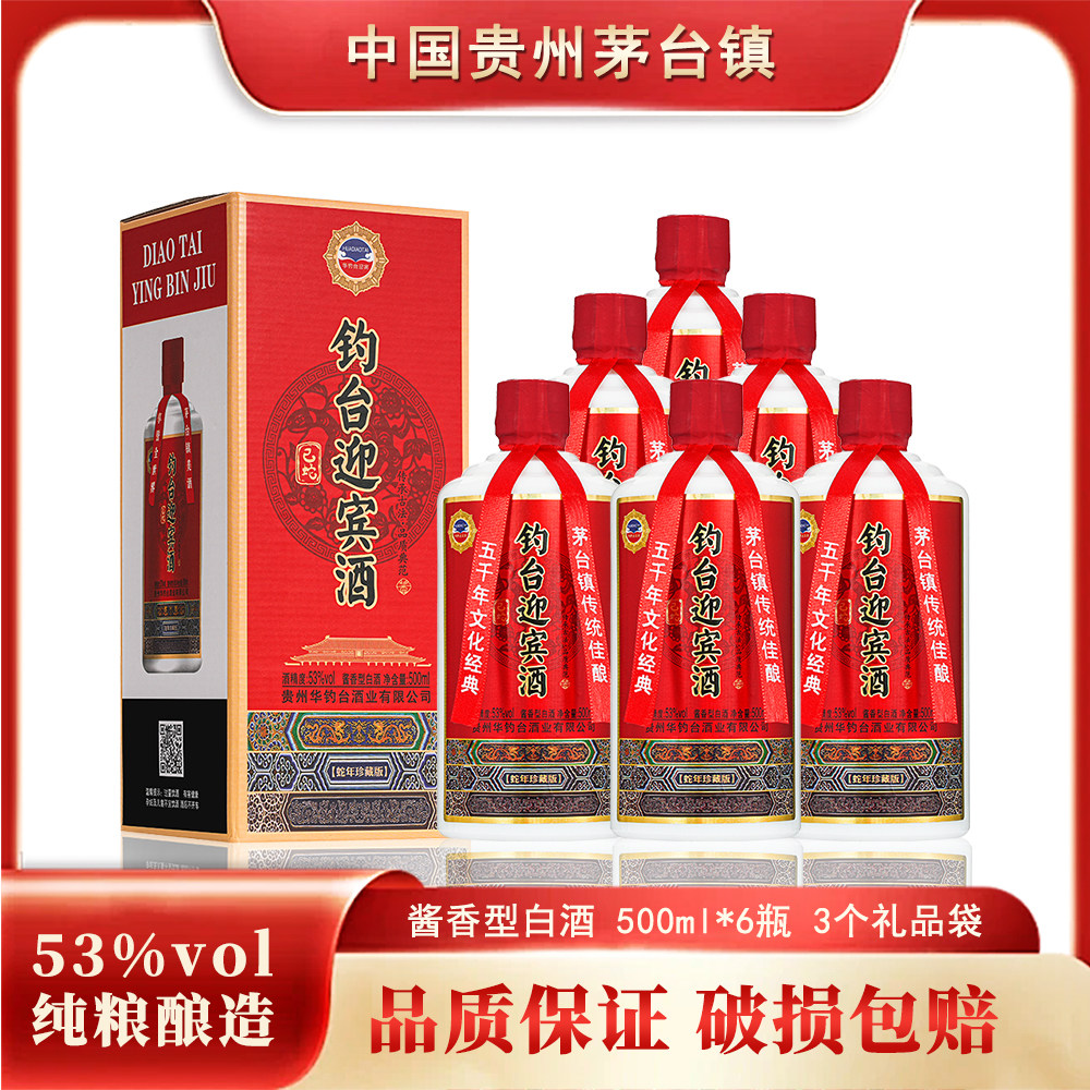 商品名称:钓台迎宾酒 53度酱香型白酒 500ml*6瓶