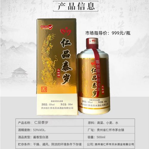 商品名称:仁品泰岁收藏限量版太岁酒3年=8年老酒口感(一瓶)